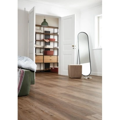 Der Vinylboden von Schöner Wohnen ist mit einem praktischen Klick-System ausgestattet. Dieses erleichtert Ihnen die Verlegung des Bodens. Die Verwendung eines Vinylbodens mit Klicksystem bringt mehrere Vorteile mit sich. Im Gegensatz zu einem verklebten Boden können Sie diesen direkt nach der Verlegung betreten. Sollten einzelne Paneele mit der Zeit stark abnutzen, lassen sich diese darüber hinaus deutlich leichter austauschen.