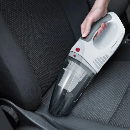 Dank des 7,4 V leistungsstarken Li-Ionen Akkus und der Gummidüse säubert dieser Staubsauger mühelos Staub und Flüssigkeiten. Die Fugendüse mit zusätzlichem Bürstenaufsatz erleichtert Ihnen die Reinigung schwer erreichbarer Stellen. Das 12 V Ladekabel für Zigarettenanzünder macht den Handsauger auch für unterwegs attraktiv. Seine Laufzeit beträgt ca. 18 Minuten, bei einer Ladezeit von ca. 10 Stunden. Das Behältervolumen beträgt 200 ml für Staub und 100 ml für Flüssigkeiten. Der Behälter lässt sich einfach entleeren, sodass keine zusätzlichen Kosten für Beutel entstehen.