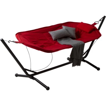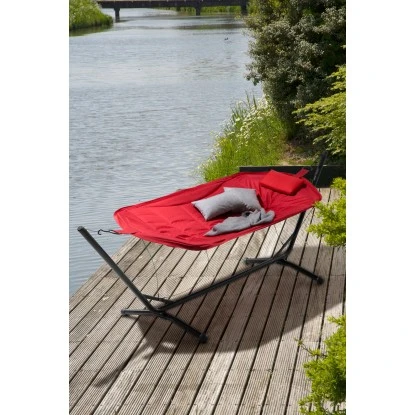 Lassen Sie die Seele baumeln und genießen Sie die Vorzüge der attraktiven Siena Garden Hängematte Panama. Die wunderbare Entspannungsmöglichkeit lädt zu Momenten des Träumens und Relaxens ein. Die PVC-beschichtete, rote Hängematte aus hochwertigem Oxfordgewebe wird in das mitgelieferte pulverbeschichtete Stahlrohrgestell eingehangen, welches durch ein dezentes Grau zu gefallen weiß.