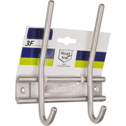 Die zeitlose, stabile Siro Hakenleiste 2196 aus Metall gefertigt mit 4 Aufhängemöglichkeiten eignet sich optimal als platzsparende Garderobenlösung. Die Leiste ist aus Edelstahl Vollmaterial und dadurch rostfrei, robust und langlebig. Im Lieferumfang sind Schrauben und Dübel enthaltenen.