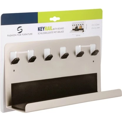 Das Siro Schlüsselboard 1996 aus Stahl gefertigt mit 6 Aufhängemöglichkeiten und einer Länge von 300 mm ist mit einer praktischen Ablage ausgestattet. Die kleine Leiste besticht durch eine edle Oberfläche in Nickel matt. Bewahren Sie Handys, Post und natürlich Schlüssel sicher an einem zentralen Ort auf. So geht nichts mehr verloren und alles findet seinen Platz. Durch die im Lieferumfang enthaltenen Schrauben ist die Montage einfach zu erledigen.