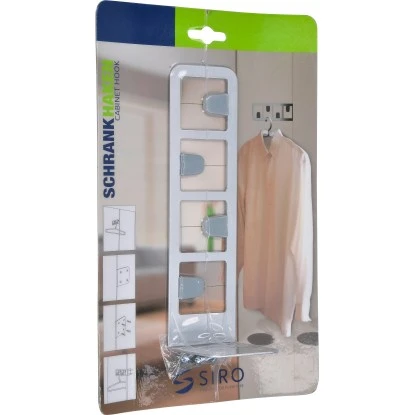 Der Siro Schrankhaken 2363 ist aus Metall gefertigt mit einer Länge von 192 mm und 4 Aufhängemöglichkeiten. Er bietet zusätzlich Platz für 2 Kleiderbügel und dient der platzsparenden Aufhängung von Kleidungsstücken. Die allseitige Luftzirkulation sorgt dabei für eine optimale Belüftung und schnelles Trocknen. Der Kleiderlüfter schafft zusätzlichen Stauraum im Kleiderschrank. Im Lieferumfang sind Schrauben für 19 mm Holzstärke enthalten.