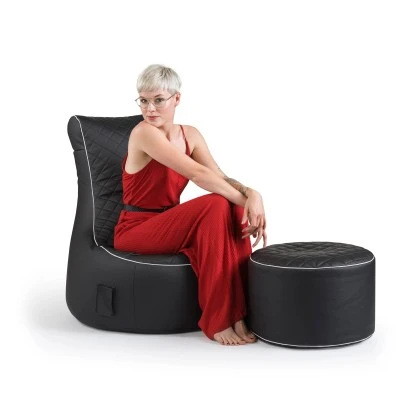 Schalten Sie ab und lehnen Sie sich zurück – Der hochwertige Sitzsack Swing Modo Tap in zeitlosem Design bietet Ihnen den perfekten Platz zur Entspannung. Der bequeme Sitzsack ist mit einem pflegeleichten, hochwertig geprägten Kunstlederbezug ausgestattet. Die Füllung aus Polystyrol passt sich perfekt Ihrem Körper an und verspricht Ihnen einen langlebigen Einsatz ohne Füllverlust und Verformungen. Dabei verleiht die praktische Seitentasche (ca. 9 cm x 10 cm) dem Sitzsack eine zusätzliche Raffinesse. Der Sitzsack lädt Sie nicht nur zum entspannten Sitzen, Chillen und Relaxen ein, sondern lässt sich darüber hinaus auch harmonisch schön in Ihr bestehendes Wohnambiente integrieren.