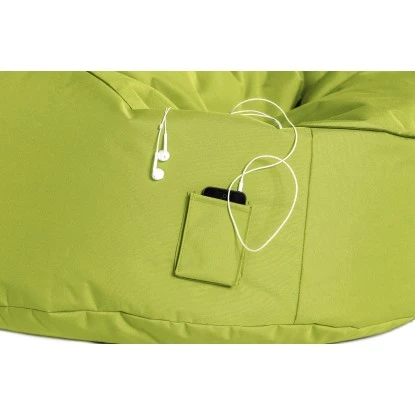Der Sitzsack lädt zum Verweilen und Entspannen ein. Wenn Sie Musik hören wollen, können Sie Ihren MP3-Player oder Ihr Handy ganz einfach in der praktischen Seitentasche verstauen. Lehnen Sie sich zurück – dank der Rückenlehne finden Sie immer eine bequeme Sitzposition. Die Füllung aus EPS-Perlen passt sich bequem dem Körper an ohne Verformungen zu hinterlassen.