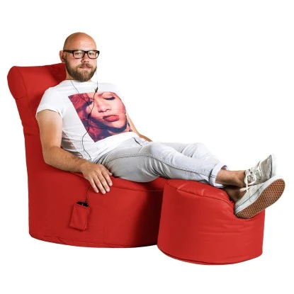 Der Sitzsack Swing Scuba in der Farbe Rot liefert Qualität Made in Germany aus dem Hause MAGMA-Heimtex. Die Maße des Sitzsacks betragen 95 x 90 x 65 cm, das Fassungsvermögen beträgt 300 l. Der Swing Scuba begeistert Jung und Alt und fügt sich in jedes Wohnambiente harmonisch ein.