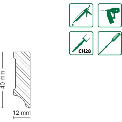Diese Sockelleiste S0402 lackiert 12 x 40 x 2400 mm Buche massiv Weiß besteht aus massiver Buche und ist in weiße Farbe ähnlich RAL9016 lackiert. Die Befestigung der leiste an der Wand kann durch Kleben, Nageln oder Schrauben erfolgen.