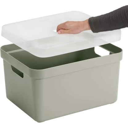 Mit ihrem modischen Design und ihrer luxuriösen Ausstrahlung können Sie diese Sunware Aufbewahrungsbox Sigma Home gut im Wohn- oder Schlafzimmer unterbringen. Die Box eignet sich zum Beispiel prima zur Aufbewahrung von herumliegendem Spielzeug, für Ihre Handarbeit oder für Ihre Lieblingsromane. Sogar im Bad leistet die Box gute Dienste – z. B. für den Vorrat an Duschgel. Und es gibt noch viel mehr Einsatzbereiche. Geben Sie Ihrer Einrichtung einen Frischekick mit der Sigma Home Box. Bei allen Sigma Home Boxen sind die Griffe integriert – daher lassen sie sich gut transportieren. Außerdem haben die Boxen ein stilvolles Design und sind – mit Deckel – perfekt stapelbar. Gestalten Sie Ihre Aufbewahrungslösung selbst – mit dem separat erhältlichen, dekorativen Deckel.