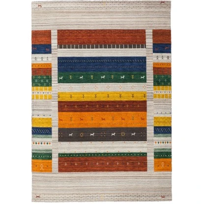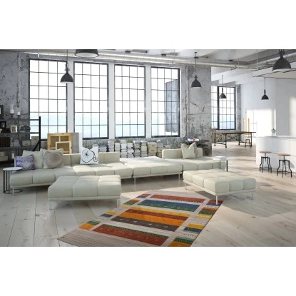 Handgewebter Teppich, aus handgesponnener Wolle, mit detailgetreuem Design. Die natürliche Faser dieses weichen Wollteppichs unterstreicht die fantasievollen Muster und schenkt jedem Raum ein unvergleichlich warmes Wohngefühl. Das interessante Design wurde mit Raffinesse entwickelt und gleicht keinem anderen. Zeitgenössisch stilvoll mit natürlicher Farbgestaltung, setzt dieser Wollteppich reizvolle Akzente in jedem Wohnraum. Die harmonische Komposition aus warmen Farben und ansprechendem Design verlockt zum Verweilen. Der dichte, weiche Flor erwärmt den ganzen Raum – dank der wärmeisolierenden Eigenschaft der Wolle, auch bei kalten Fliesen und in kühlen Ecken. Durchbrochene Linien im Muster erzeugen eine dynamische Wirkung, die Schwung und Lebensfreude auf den Betrachter projizieren. Die harmonisch aufeinander abgestimmten Farben bringen das kontraststarke Gesamtbild in harmonischen Einklang. Zur individuellen Kombination stehen unterschiedliche Farbdesigns und Größen zur Auswahl. Der traumhafte Wollteppich setzt sich in unterschiedlichsten Räumen auf feine Art in Szene und schont beanspruchte Fußböden. Erfreuen Sie sich an diesem schönen Schmuckstück und lassen Sie es sich gut gehen. Im Nu einladender, gemütlicher und wärmer.
