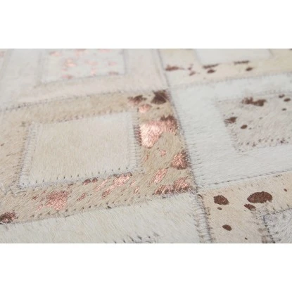 Der wunderschöne Lederteppich mit eingearbeiteten Applikationen aus metallischer Folie rundet jeden edlen Einrichtungsstil gekonnt ab. Der hochwertige Edel-Teppich aus 100% Leder überträgt einen individuellen Touch. Von Hand gefertigt ist jeder einzelne Lederteppich ein Unikat. Die Verwendung von edlen Naturmaterialien und die hochwertige Verarbeitung sorgen für ein dynamisches Aussehen. Zudem kann der Besitzer sich an der Nachhaltigkeit dieses Teppichs und an einem natürlichen Wohngefühl erfreuen. Setzen Sie ein Statement mit diesem Lederteppich und machen Sie ihn zum Blickfang in Ihren vier Wänden.