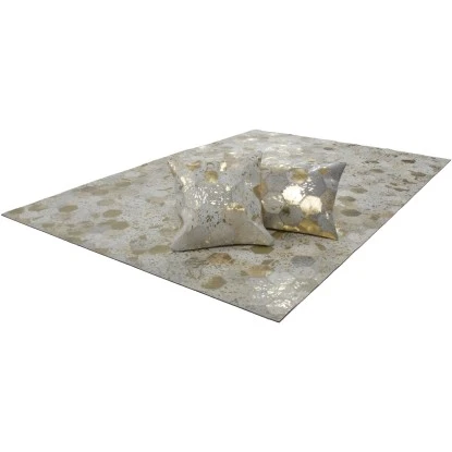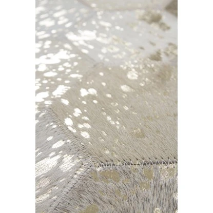 Der wunderschöne Lederteppich mit eingearbeiteten Applikationen aus metallischer Folie rundet jeden edlen Einrichtungsstil gekonnt ab. Der hochwertige Edel-Teppich aus 100% Leder überträgt einen individuellen Touch. Von Hand gefertigt ist jeder einzelne Lederteppich ein Unikat. Die Verwendung von edlen Naturmaterialien und die hochwertige Verarbeitung sorgen für ein dynamisches Aussehen. Zudem kann der Besitzer sich an der Nachhaltigkeit dieses Teppichs und an einem natürlichen Wohngefühl erfreuen. Setzen Sie ein Statement mit diesem Lederteppich und machen Sie ihn zum Blickfang in Ihren vier Wänden.