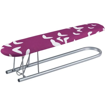 Der Vileda Bügeltisch Viva Express Compact bietet alles was man zum Bügeln braucht. Der Bügeltisch im attraktiven Design hat eine Bügelfläche von 114 cm x 34 cm und ist mit einer robusten Bügeleisenablage aus Metall ausgestattet. Da der Bügeltisch bis 96 cm stufenlos höhenverstellbar ist, können Sie Ihre individuelle Arbeitshöhe ganz leicht selbst festlegen. Die breiten Füße sorgen für einen sicheren und stabilen Stand während die integrierte Click & Stop Kindersicherung ein ungewolltes Zusammenklappen des Tisches (und ein dadurch ungesichertes Bügeleisen) verhindert. Das im Lieferumfang enthaltene Ärmelbrett erleichtert das Bügeln von Hemden- und Blusenärmeln enorm.