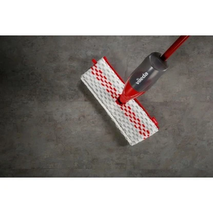 Der Vileda Sprüh-Wischer 1-2-SprayMax mit seiner um 180° drehbaren Wischerplatte erfasst 2 mal mehr Fläche als herkömmliche Produkte. Der Bezug überzeugt durch seine Kombination aus weißen Mikro- und roten Kraftfasern. Die saugstarken Mikrofasern reinigen extra gründlich und entfernen selbst fetthaltige Verschmutzungen, während die roten Kraftfasern Haare, Krümel und Schmutzpartikel aufnehmen.