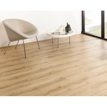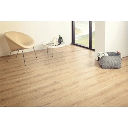 Der Vinylboden verfügt über ein praktisches Klick-System. Dieses erleichtert Ihnen die Verlegung des Bodens. Der Einsatz eines Vinylbodens mit Klicksystem hat mehrere Vorteile. Im Gegensatz zu einem verklebten Boden können Sie diesen direkt im Anschluss an die Verlegung betreten. Sollten einzelne Paneele mit der Zeit stark abnutzen, lassen sich diese darüber hinaus deutlich leichter austauschen.