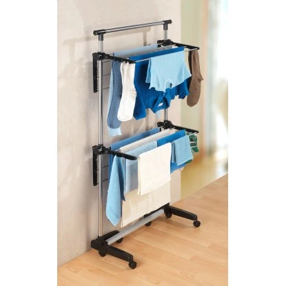Der Platzspar-Wäschetrockner von Wenko ist ein echter Allrounder für viel Wäsche auf wenig Grundfläche. Auf zwei Etagen finden alle Wäschestücke ausreichend Platz zum Trocknen.