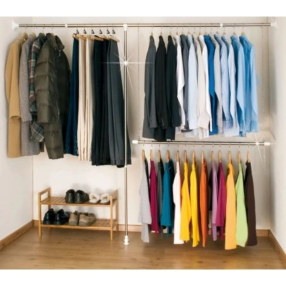 Mit dem Teleskop-Garderoben-Set aus hochwertigem, rostfreien Edelstahl kann in nahezu jedem Raum der Traum eines begehbaren Kleiderschrankes wahr werden.