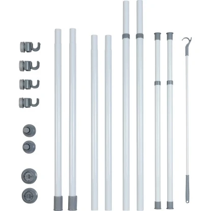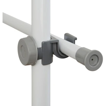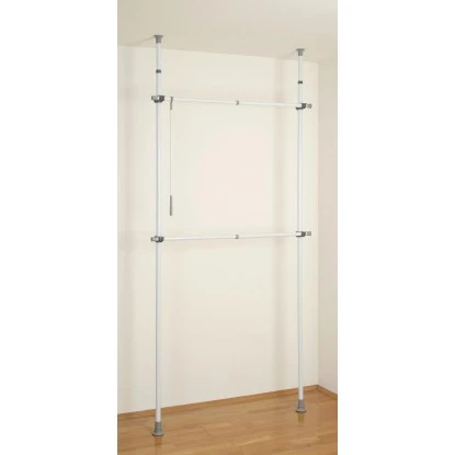 Die Trägerstangen lassen sich in der Höhe von 165-300 cm teleskopisch ausziehen. In der Breite ist das System von 75-120 cm an den Raum anpassbar. Mit dem mitgelieferten Kleiderhaken können auch höher hängende Kleidungsstücke einfach und schnell erreicht werden.