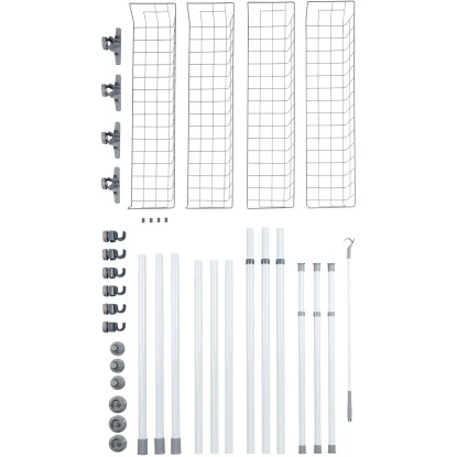 Die Trägerstangen lassen sich in der Höhe von 165-300 cm teleskopisch ausziehen. In der Breite ist das System von 164-215 cm an den Raum anpassbar. Zudem können die Lieblingskleidungsstücke ganz einfach mit dem beiliegenden Kleiderhaken eingehängt oder abgenommen werden. So können auch höher hängende Kleidungsstücke einfach und schnell erreicht werden.