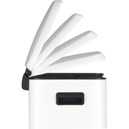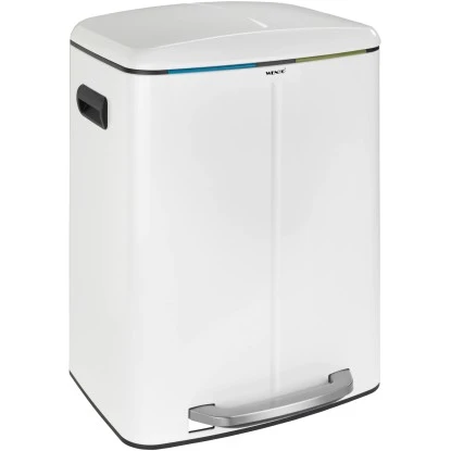 Der hochwertige und trendige Tret-Mülleimer aus der Serie Primo von Wenko ist aus weiß lackiertem Stahl hergestellt. Die satinierte Oberfläche und die schöne Form verleihen dem Abfalleimer eine edle Optik. Ausgestattet mit der Wenko Easy-Close-Absenkautomatik schließt der Deckel ganz sanft und leise ohne lautes Aufknallen. Durch seine Tretfunktion mit extra großem Pedal kann der Eimer ohne einen Handgriff leicht geöffnet werden und schließt wieder von selbst. Der Deckel lässt sich im offenen Zustand praktisch feststellen. Der Abfalleimer ist mit einer Anti-Fingerprint Beschichtung ausgestattet. Diese lässt Fingerabdrücke auf der mattierten Oberfläche fast unsichtbar erscheinen. Der Tret-Mülleimer Primo hat ein Fassungsvermögen von 2 x 20 l und ist ideal als Abfalleimer in Küche und Haushalt, sowie auch im Badezimmer einsetzbar. Besonders clever: Mülltrennung inklusive. Dank der beiden Behälter mit jeweils 20 l Fassungsvermögen wird das Recycling zum Kinderspiel, die Farbmarkierung erleichtert das Sortieren, z.B. nach Papier und Plastik.