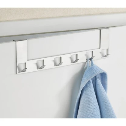 Die hochwertige Türgarderobe Anzio erweitert einfach und schnell die Aufhängemöglichkeiten in der Wohnung, in dem sie bisher ungenutzten Platz nutzbar macht. Durch ihr dezentes Design fügt sie sich in jeden Raum stilvoll ein und ist aufgrund des Materials aus satinierter, massiver, rostfreier Edelstahl-Qualität auch für den Einsatz im Nassbereich geeignet. So kann sie flexibel in Diele, Schlafzimmer oder Bad angebracht werden. Ihre 6 stabilen Haken eignen sich ideal zum Aufhängen von Jacken, Handtüchern oder Bademänteln. Zur Befestigung wird die Garderobe einfach an der Tür eingehängt (bis Falzstärke von 2 cm) – ohne Bohren, Schrauben oder Nägel. Die Tür schließt trotz eingehängter Garderobe weiterhin problemlos.