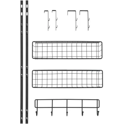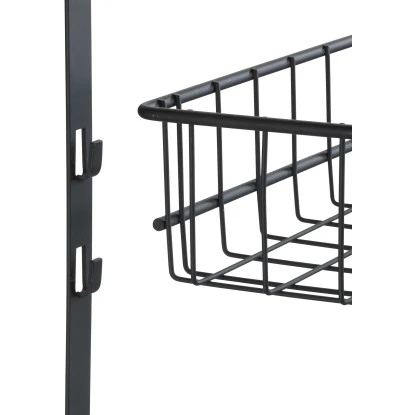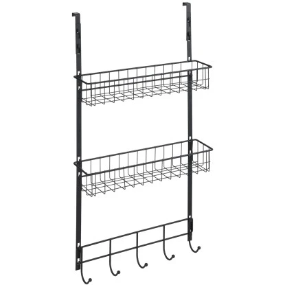 Das moderne Hängeregal mit zwei Ablagekörben und fünf Haken macht Ordnungsproblemen ein Ende. Der clevere Helfer aus hochwertigem, pulverbeschichtetem Metall bietet viel Platz und schafft zusätzlichen Stauraum. In der Küche werden Küchen-Utensilien, Gemüse, Gewürze und vieles mehr übersichtlich aufbewahrt. Auch im Badezimmer macht der Organizer eine gute Figur. Hier finden Accessoires, Bürsten, Gästehandtücher, etc. einen dekorativen Platz. An den praktischen Haken können Geschirrhandtücher, Waschlappen, Duschhandtücher, Bademäntel griffbereit aufgehängt werden.