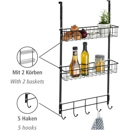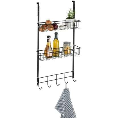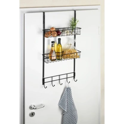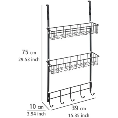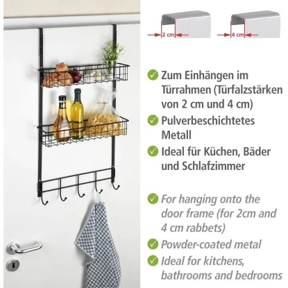 Besonders praktisch: Für die Montage wird keinerlei Werkzeug benötigt. Das Wandregal lässt sich ganz einfach an der Tür einhängen. Im Lieferumfang sind hochwertige Haken zum Einhängen an die Tür enthalten. Die Haken eignen sich für Türfalzstärken von 2 cm und 4 cm. Selbstverständlich lässt sich die Tür leicht schließen. Abmessung der Körbe: 39,5 x 10 x 7 cm, Abstand zwischen den Körben 9 cm