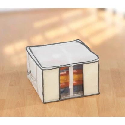 Das Luftventil verhindert das Eindringen von Luft und sorgt somit für langanhaltenden Schutz. Mit der Vakuum Soft Box M kann eine Platzersparnis von bis zu 75 Prozent erzielt werden. Bei Bedarf einfach die Box öffnen und schon sind die Kleidungsstücke wieder verfügbar.
