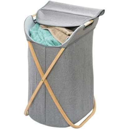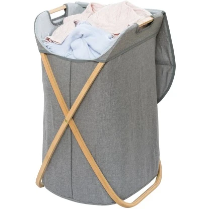 Der stabile Wenko Wäschesammler Bahari besteht aus hochwertigem Bambus und bietet mit 79 l Fassungsvermögen jede Menge Platz für Ihre Wäsche bis zum nächsten Waschgang. Der Deckel verhindert das Rausfallen der Kleidungsstücke und schützt vor unerwünschten Blicken ins Innere. Doch auch optisch kann der Wäschesammler überzeugen und wird in jedem Ihrer Räume, ob im Badezimmer, im Schlafzimmer oder im Wäschekeller zu einem Hingucker. Der schöne, graue Wäschesack besteht aus einem pflegeleichten Polyester/Baumwollgemisch. Bei Nichtgebrauch kann der praktische Sammler einfach zusammengefaltet und platzsparend aufbewahrt werden.