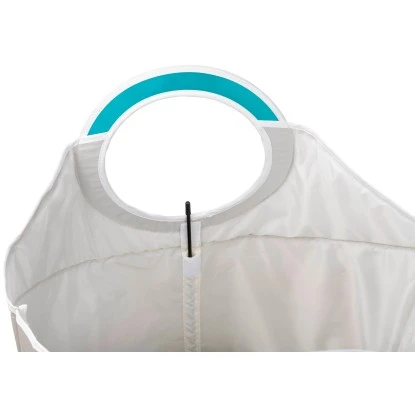 Eine weitere Besonderheit beim Wäschekorb Donkey von Wenko sind seine zwei magnetischen und beweglichen Griffe. Aufgeklappt bieten sie eine sichere Griffmöglichkeit für den Transport von Schmutzwäsche zur Waschmaschine. Zusammengeklappt bilden sie ein 18 cm großes Loch, durch das man die Wäsche bequem in den Wäschesammler legen kann. Gleichzeitig wird ein guter Sichtschutz auf die schmutzige Wäsche gewährleistet. Der clevere Wäschesammler Donkey wird in dieser Ausführung in einem trendigen Petrol angeboten und lässt sich problemlos in den vorhandenen Stil jedes Bade- oder Schlafzimmers integrieren.