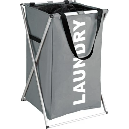 Der Wäschekorb ist aus hochwertigem, strapazierfähigem Polyestergewebe gefertigt. Die stabilen Trageriemen eignen sich zum bequemen Transport der Wäsche. Die praktische Netzabdeckung mit Zugband-Verschluss verhindert das Rausfallen der Kleidungsstücke. In seinem leichten, stabilen Aluminium-Gestell steht der Korb stets sicher an gewünschter Stelle.