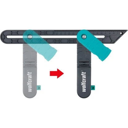 – ein integriertes Loch im beweglichen Schenkel zur Führung des Stiftes für die Streichmaßfunktion